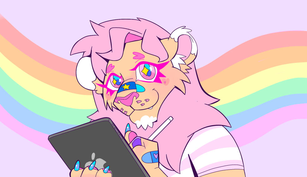 A chibi of your fursona / character holding a pride flag of your choice! The shirt can also be a pride flag as well.Can come with a extra pride circle in the back for an extra $5.Couple and Polyam options available for extra.