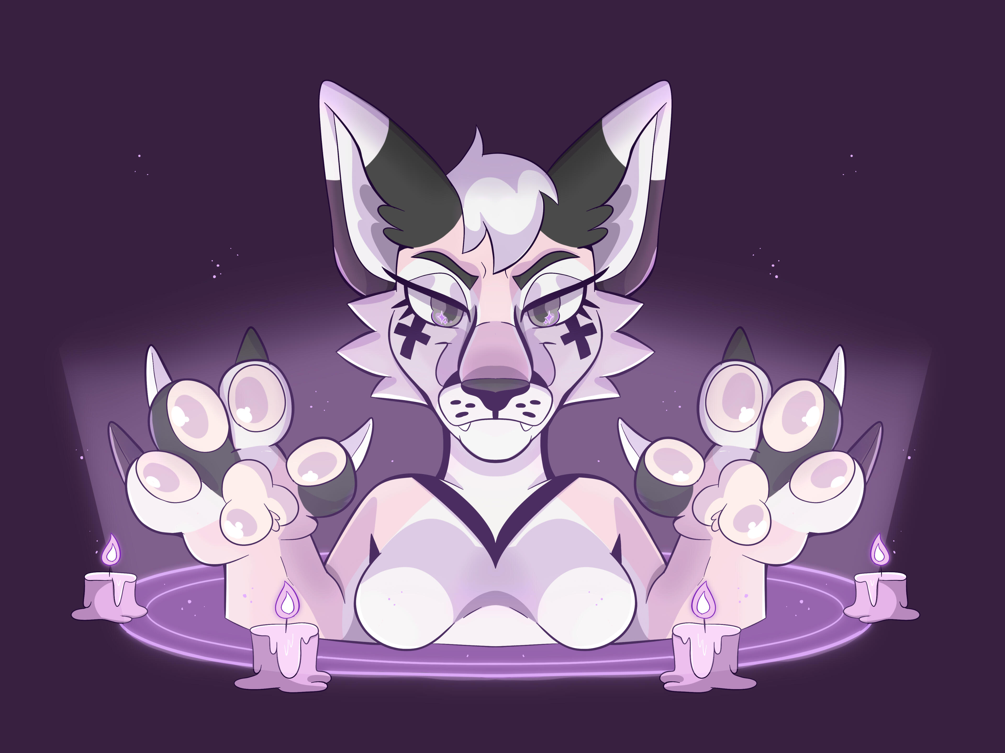 Includes 2 fullbodies (front and back), eye/paw colours, colour palette, mouth details, likes/dislikes, character info, body and other details (headshot, bone/blood, nsfw info, partner(s) )Can also be simplified as well!