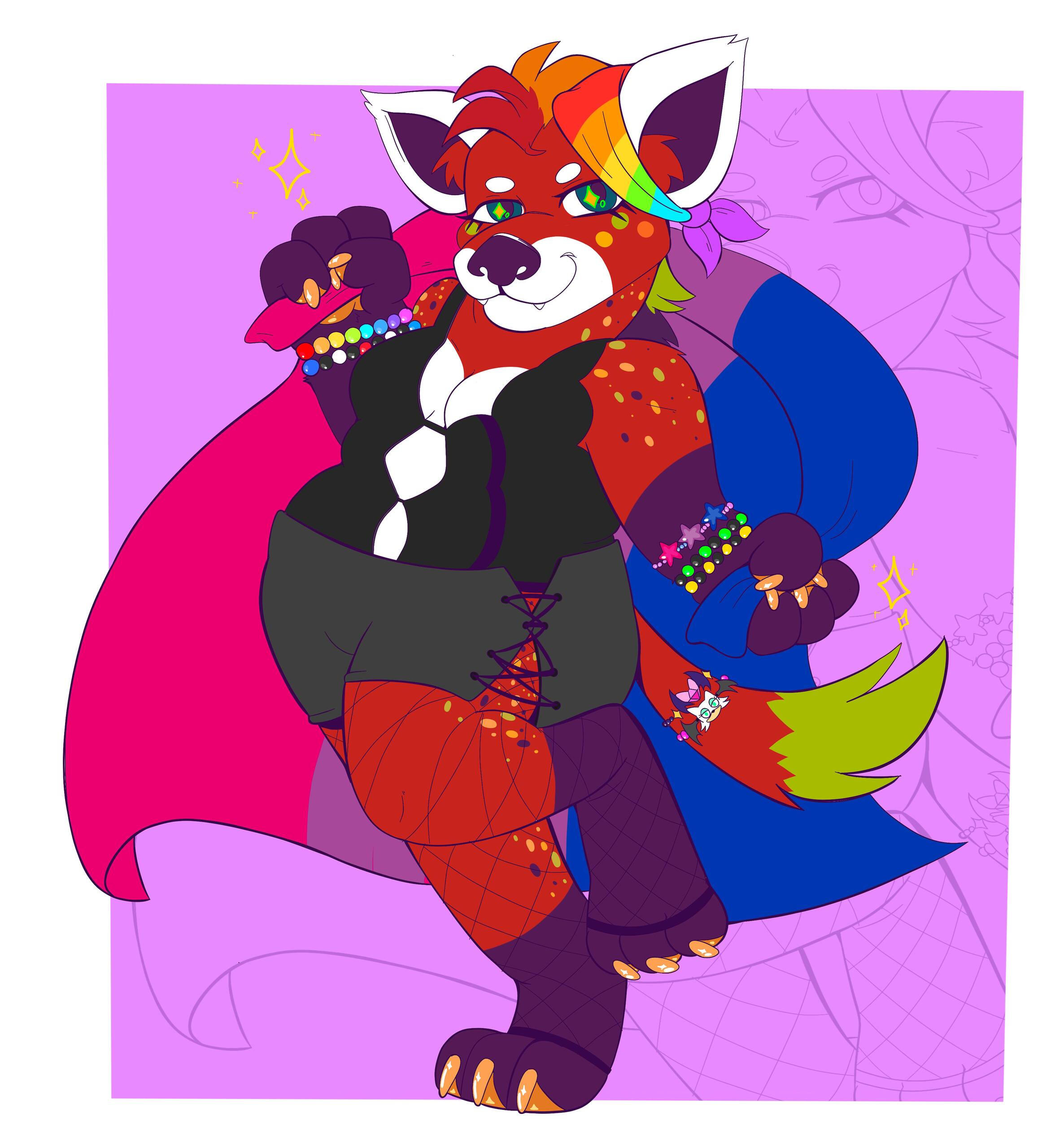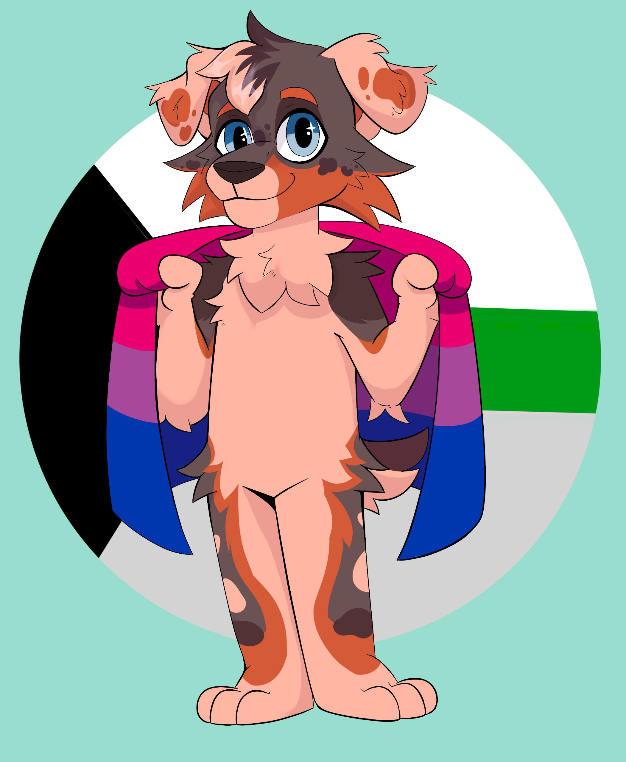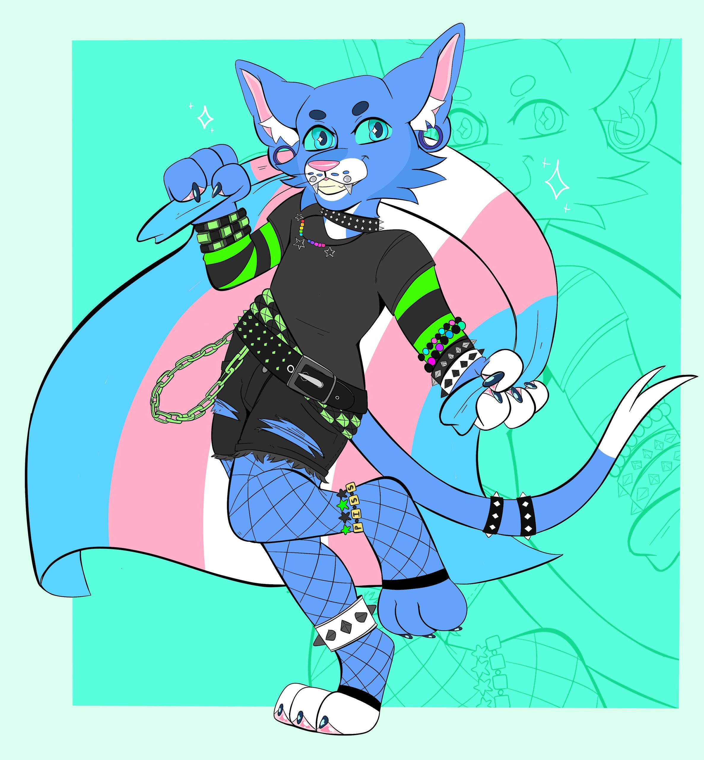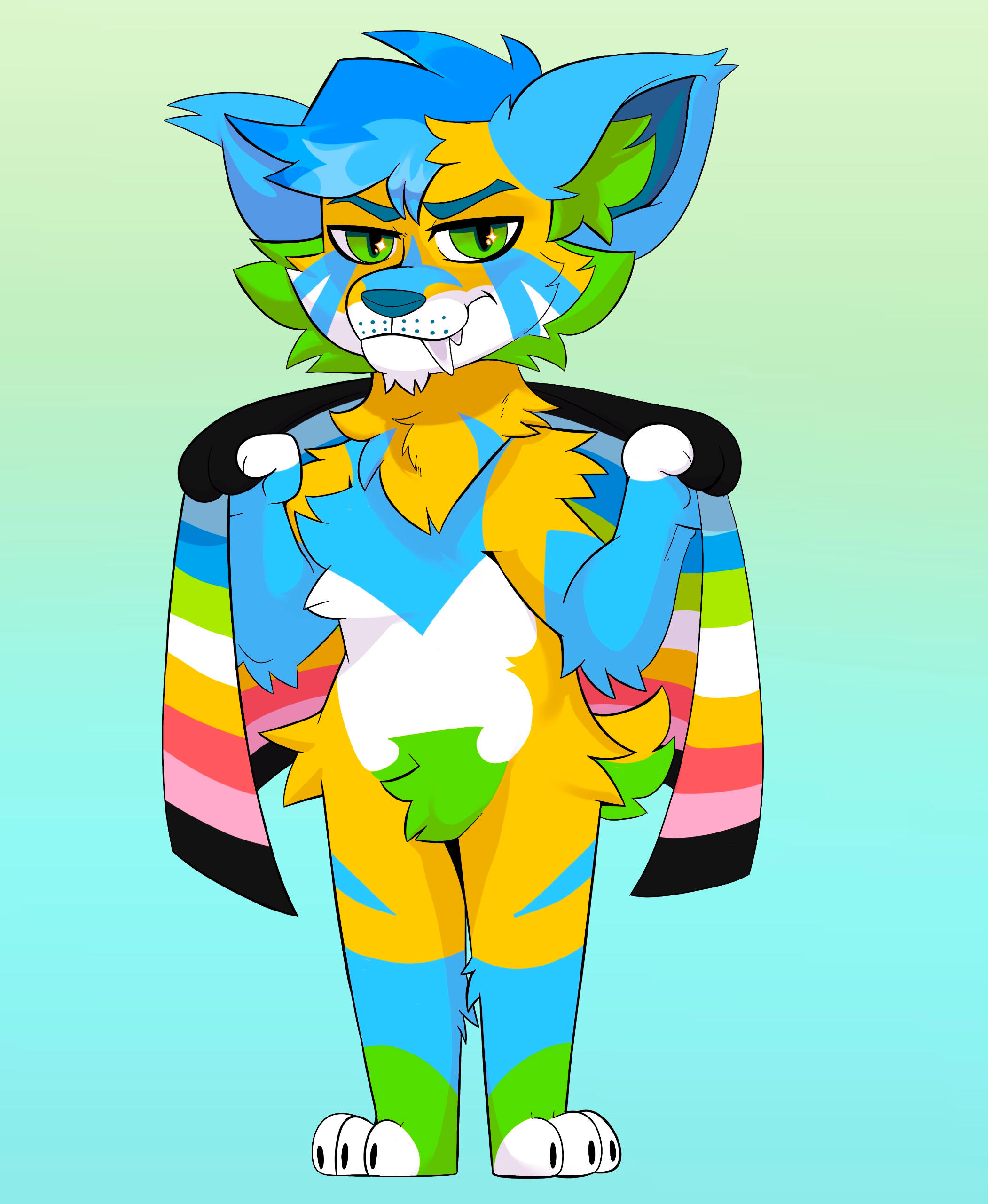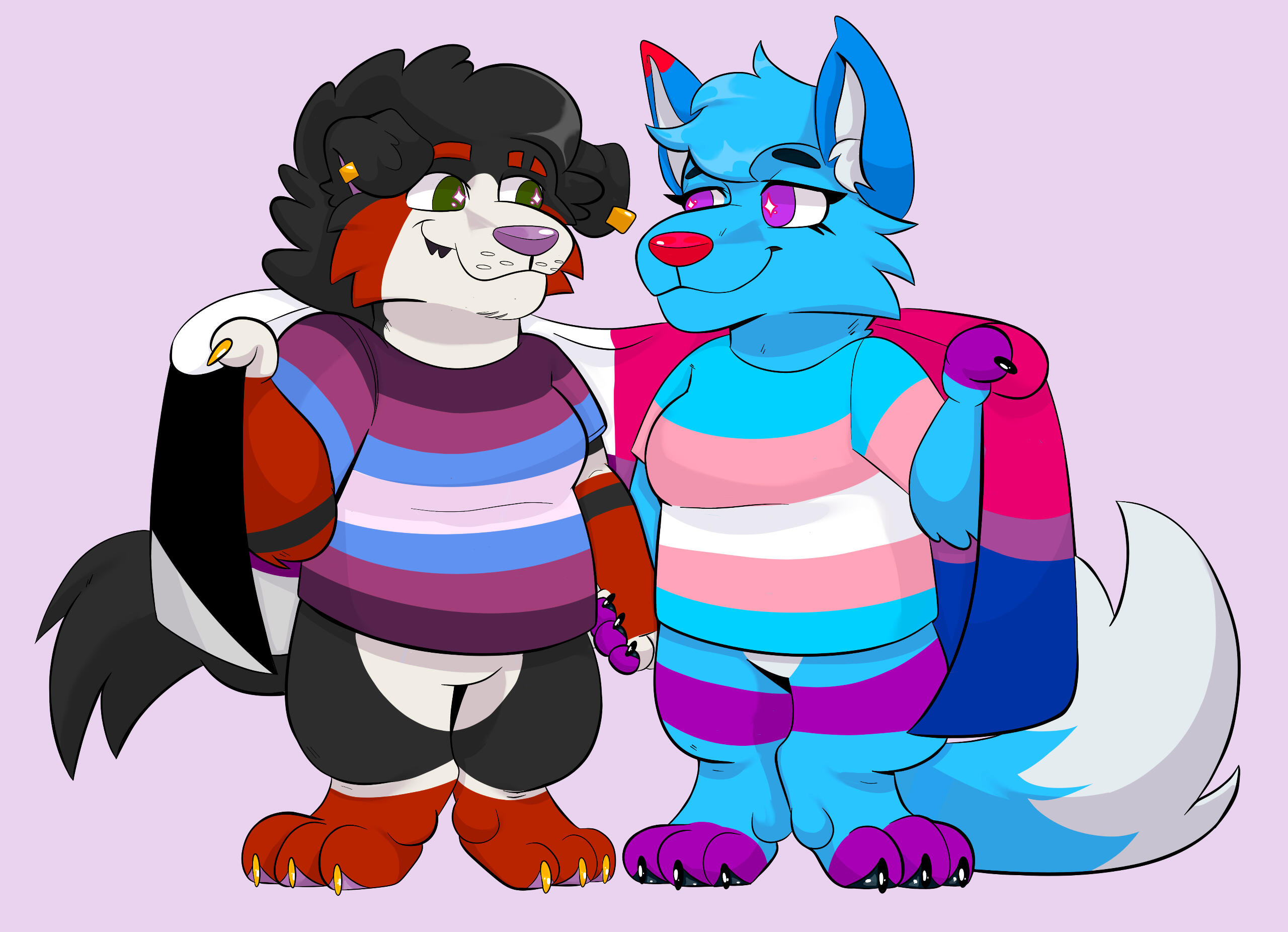 A chibi of your fursona / character holding a pride flag of your choice! The shirt can also be a pride flag as well.Can come with a extra pride circle in the back for an extra $5.Couple and Polyam options available for extra.