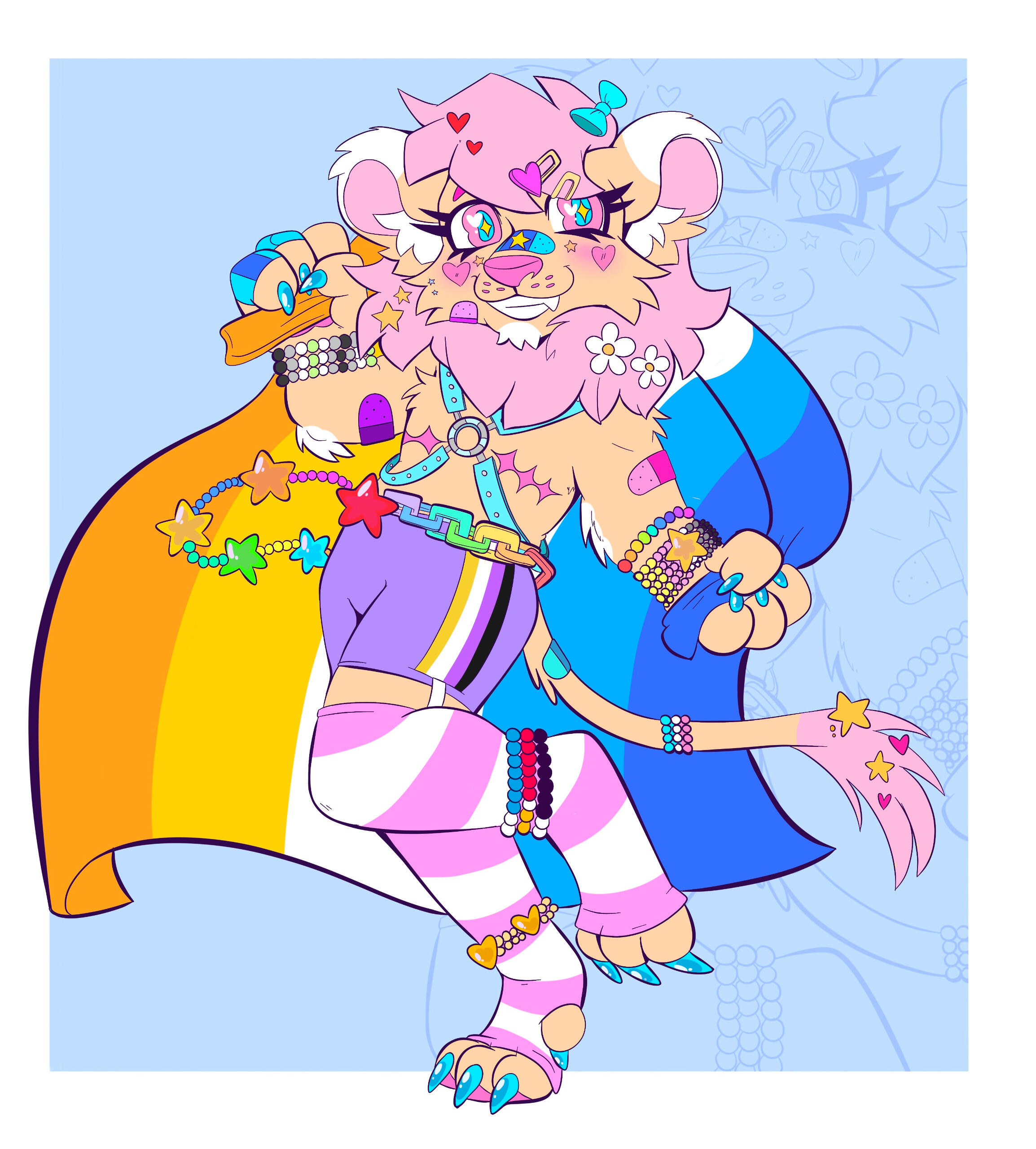 A fullbody drawing of a character and pride flag of your choice! Can Have any accessories you want.