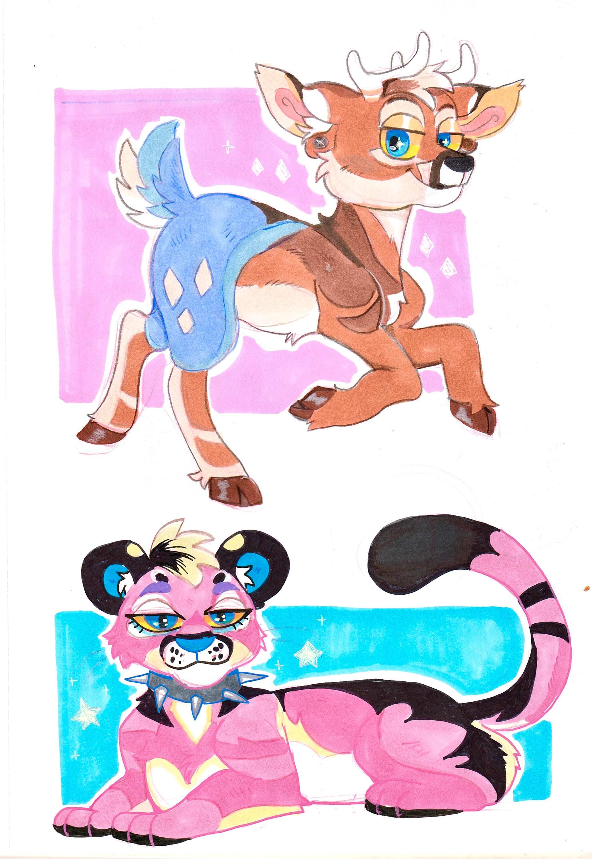 Includes 2 fullbodies (front and back), eye/paw colours, colour palette, mouth details, likes/dislikes, character info, body and other details (headshot, bone/blood, nsfw info, partner(s) )Can also be simplified for a lower price.