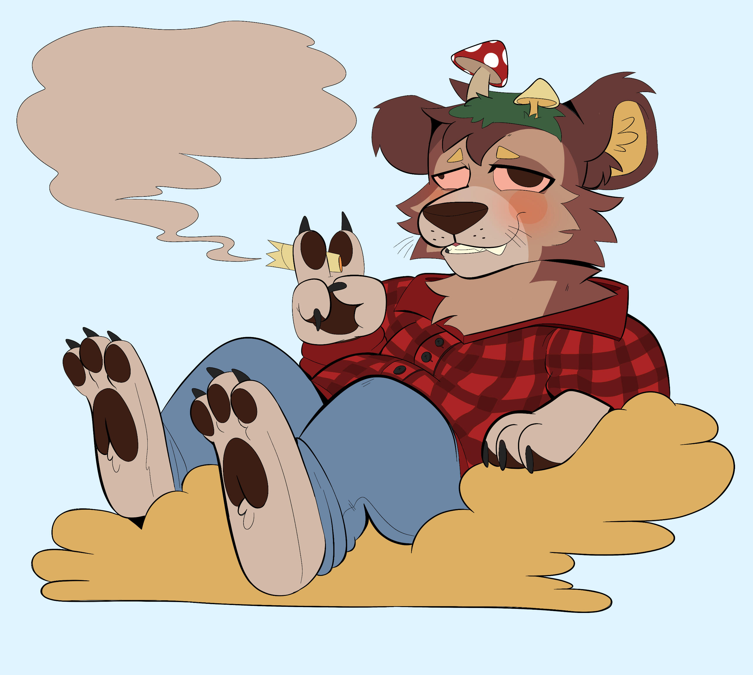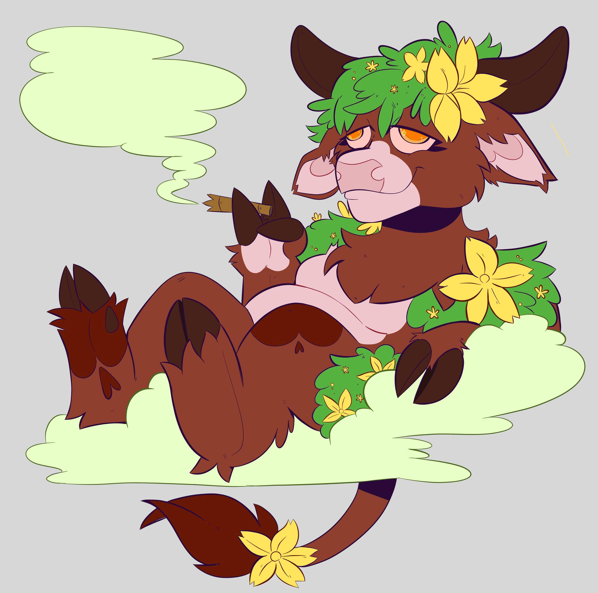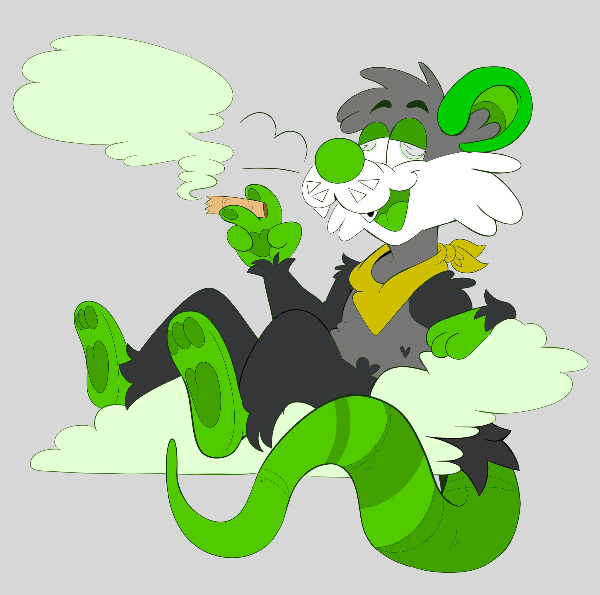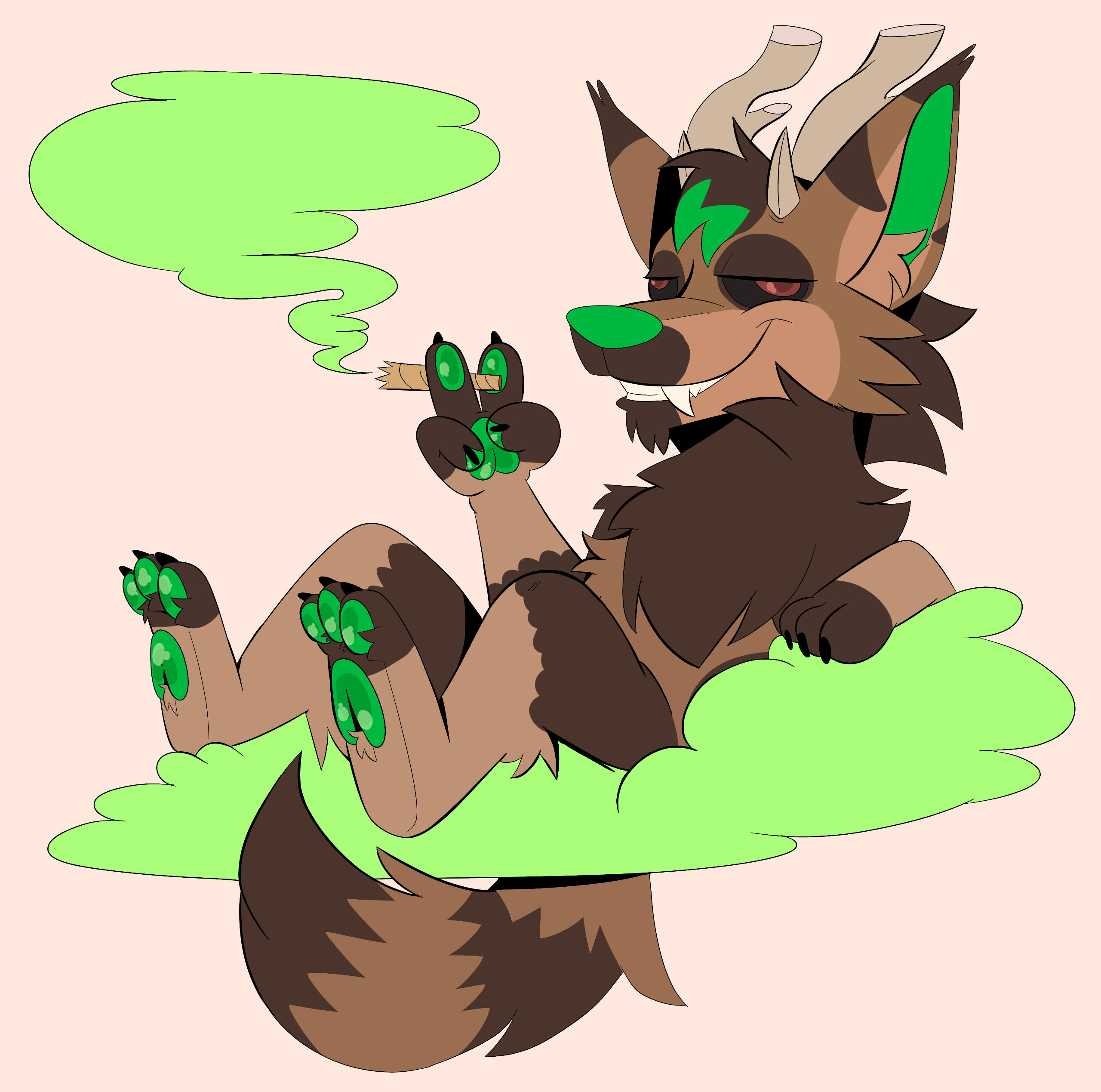 A fullbody drawing of a character of your choice smoking a joint/vape on a cloud.
